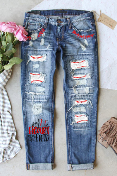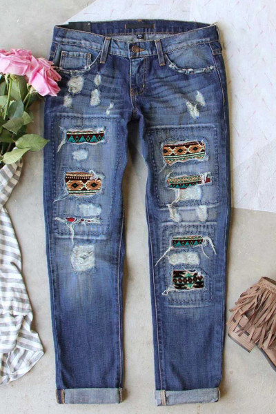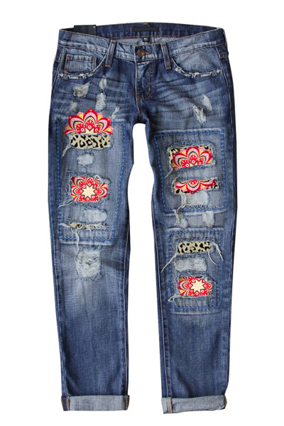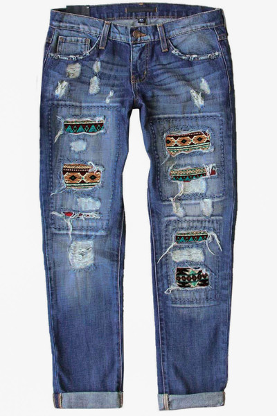 Women's Ripped Boyfriend Jeans Skull Print Jean Distressed Stretch Skinny Pants