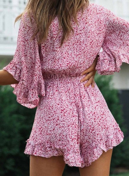 Black Long Sleeve Romper Button Down Short Jumpsuit For Women
